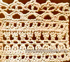 В этом разделе размещена коллекция образцов краевого кружева, связанного крючком. Каждому узору прилагается фотографии связанного образца, схема вязания и описание хода работы. Образцы в разделе сгруппированы от простого к сложному.